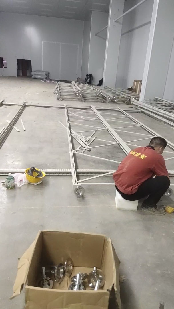 這個是裝好立柱組的樣子,把所有的立柱組組裝好了之后再立起來。關注我,下期帶大家看看智能貨架安裝好雛形的樣子。